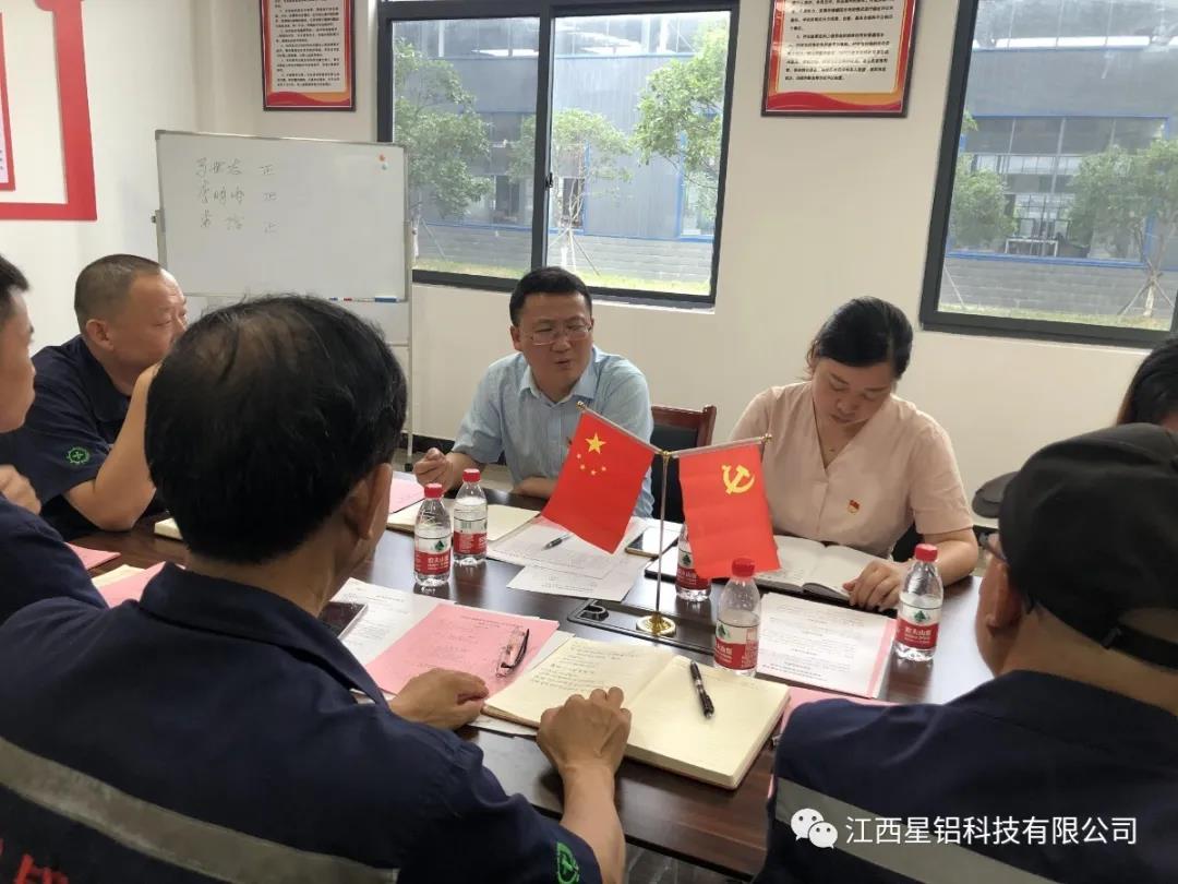 2020年6月19日,中共江西星铝科技有限公司支部委员会成立暨首届党员大会胜利召开,公司7名正式党员全部参加了会议。会议由老党员、公司常务副总经理崔强同志主持,中共新余高新区锂电新能源产业园党组成员刘小仁同志、党务干部袁娣同志代表产业园党委莅临了会议。